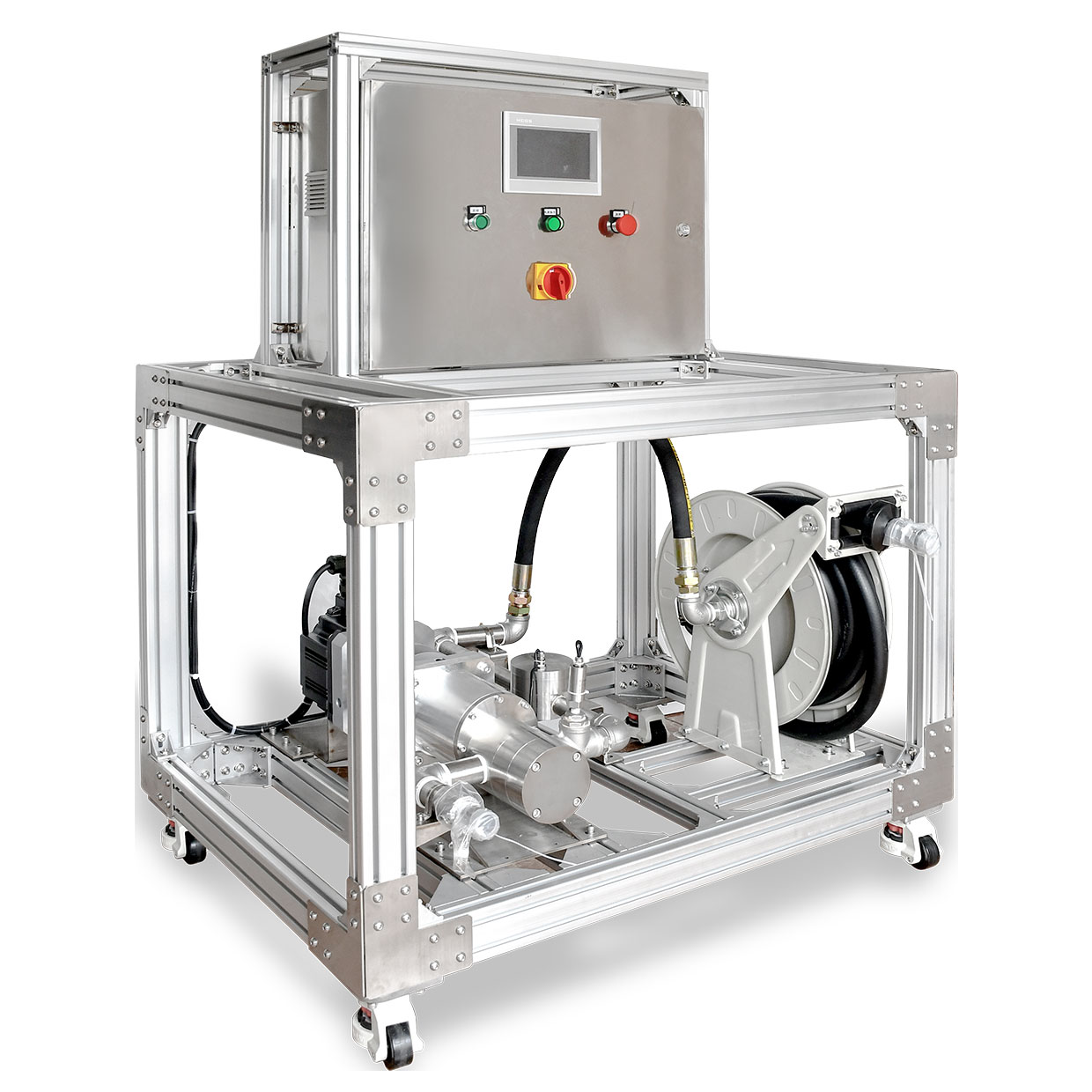 大流量,高粘度介质输送泵控撬装系统流量计组合齿轮泵,可视化,操作方便,运行平稳。